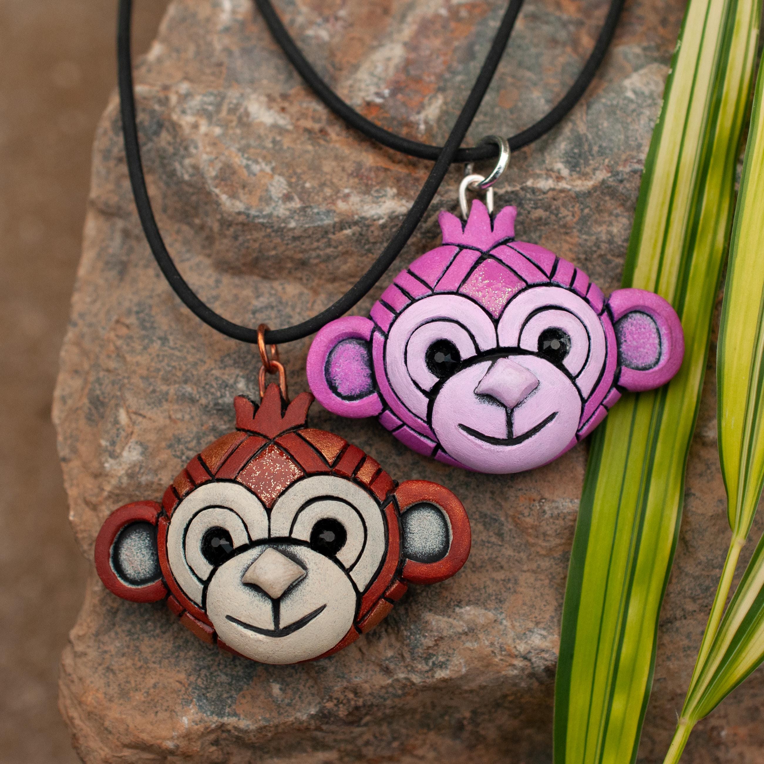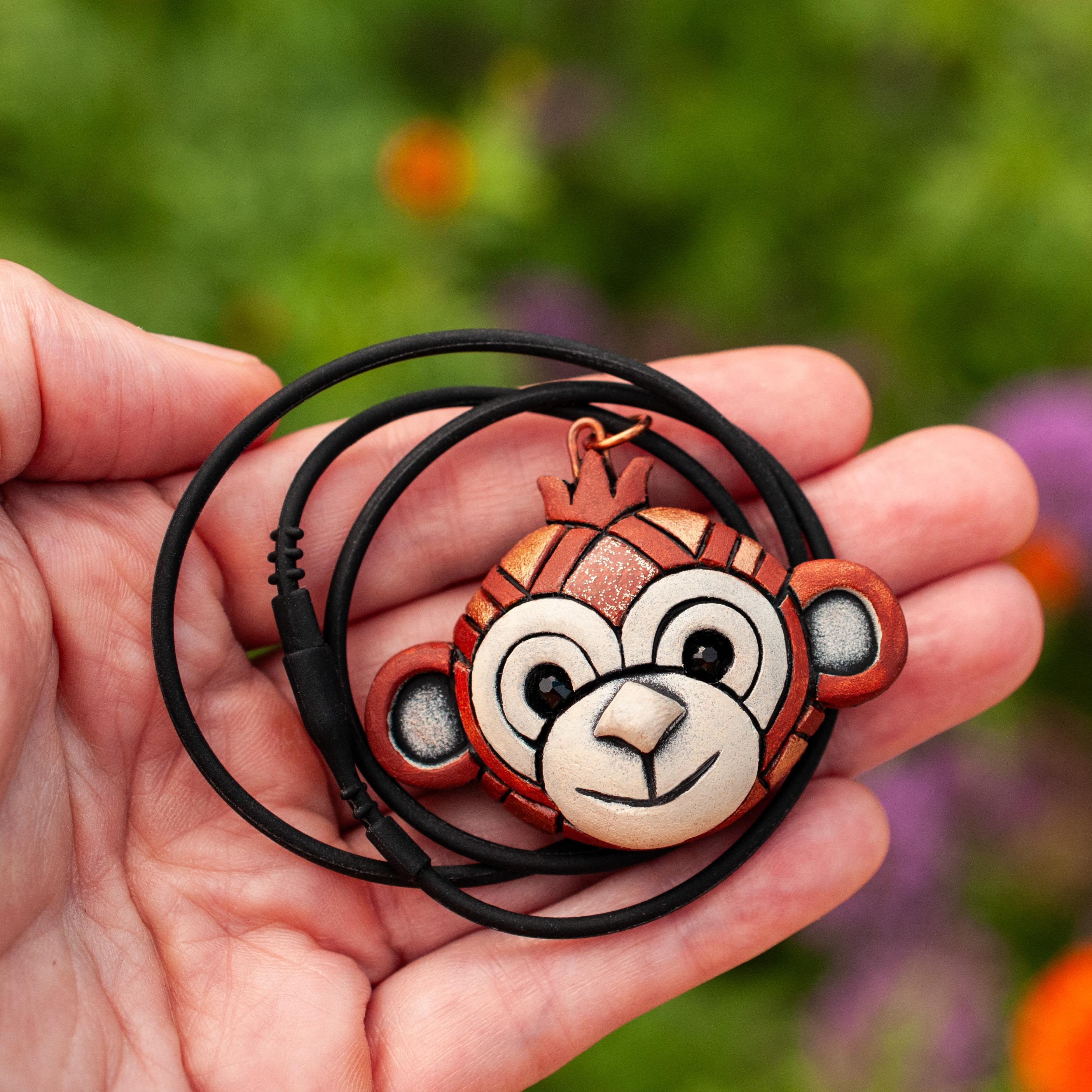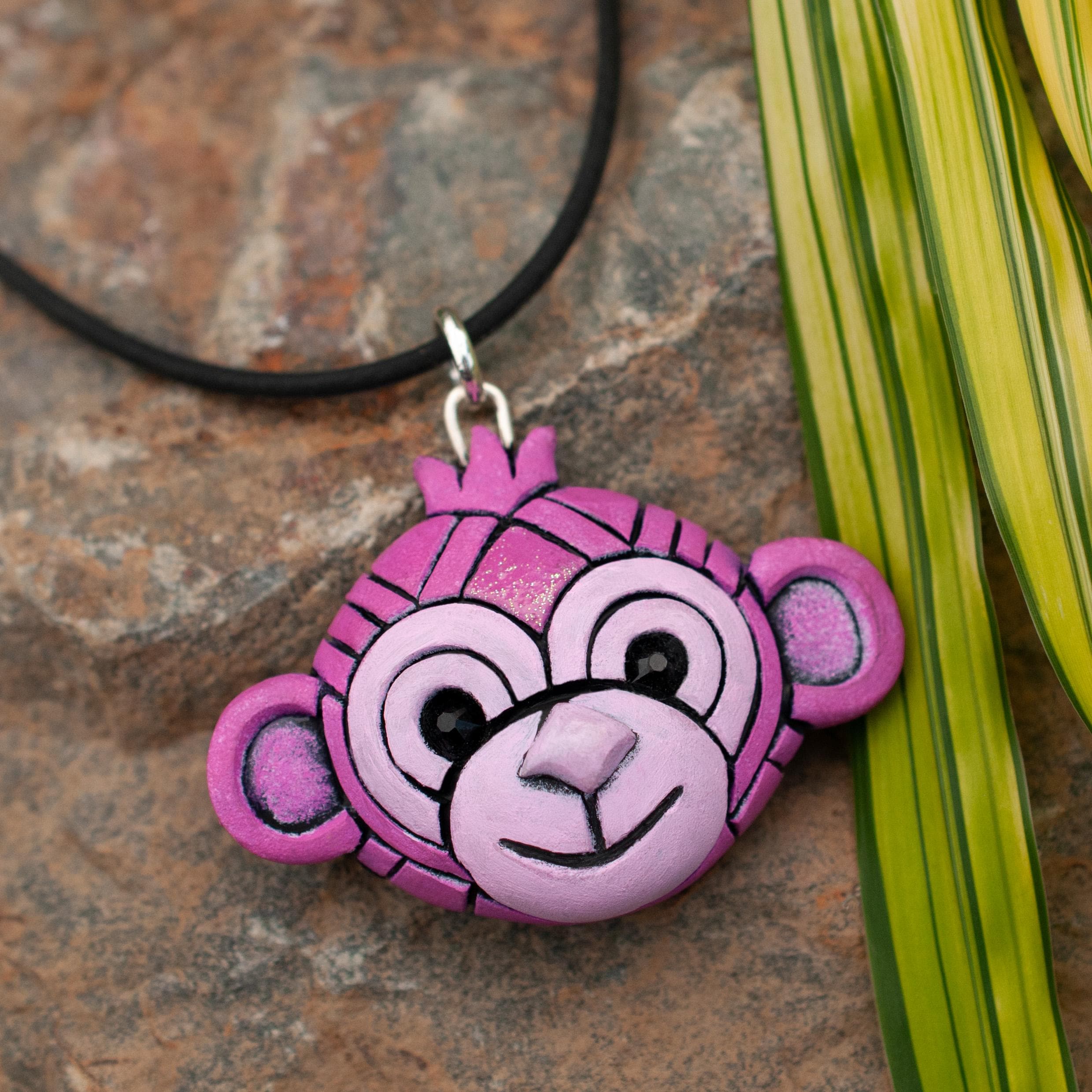 Monkey necklace in my signature mosaic style! This cute handmade pendant is full of personality and makes a fun, heartfelt gift for animal lovers, kids, or anyone who loves cheerful jewelry. Choose brown or pink, and your favorite cord style — adjustable leather or stretch silicone.