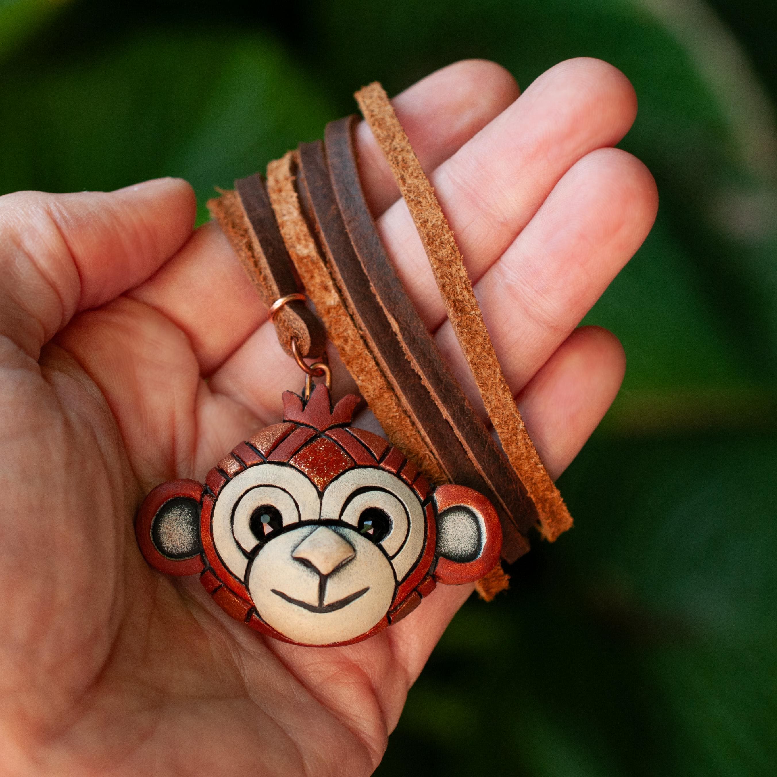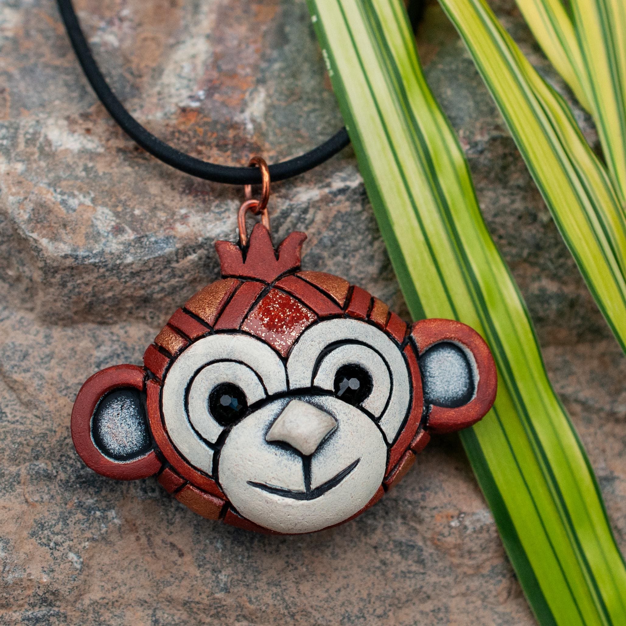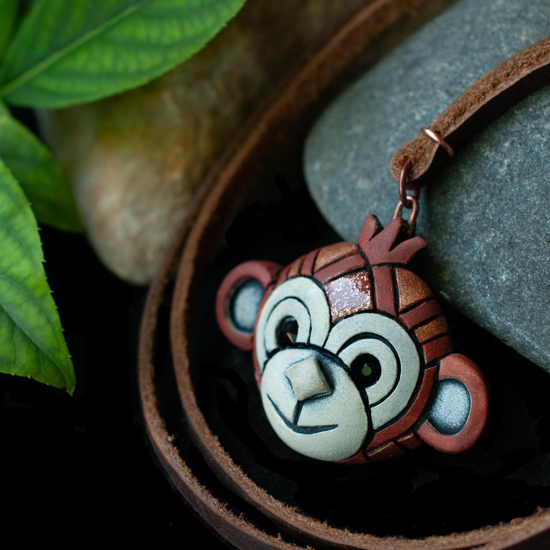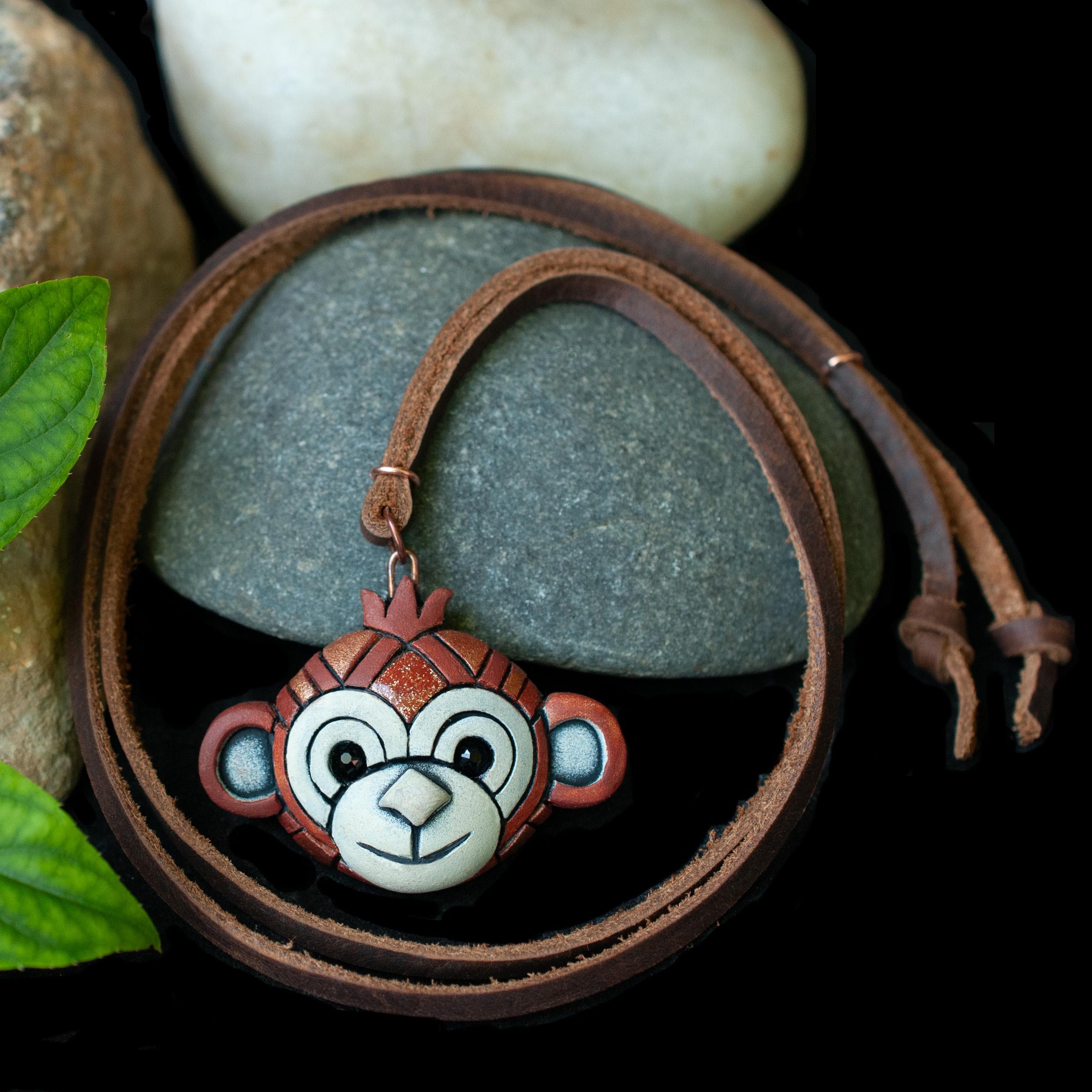 Monkey necklace in my signature mosaic style! This cute handmade pendant is full of personality and makes a fun, heartfelt gift for animal lovers, kids, or anyone who loves cheerful jewelry. Choose brown or pink, and your favorite cord style — adjustable leather or stretch silicone.