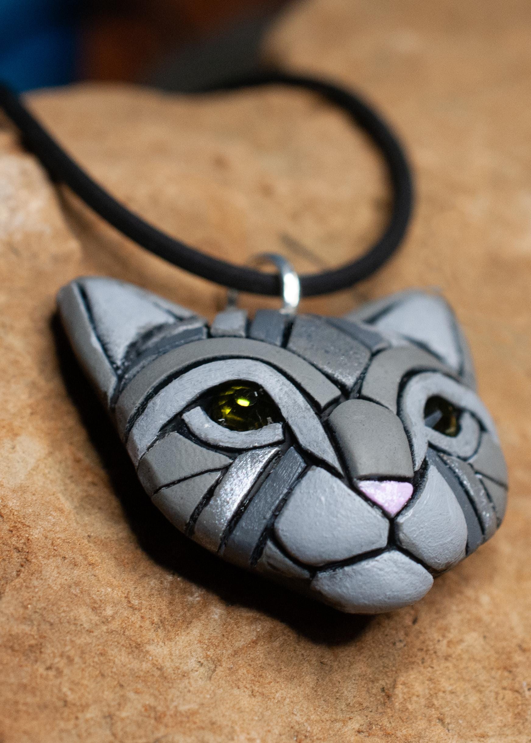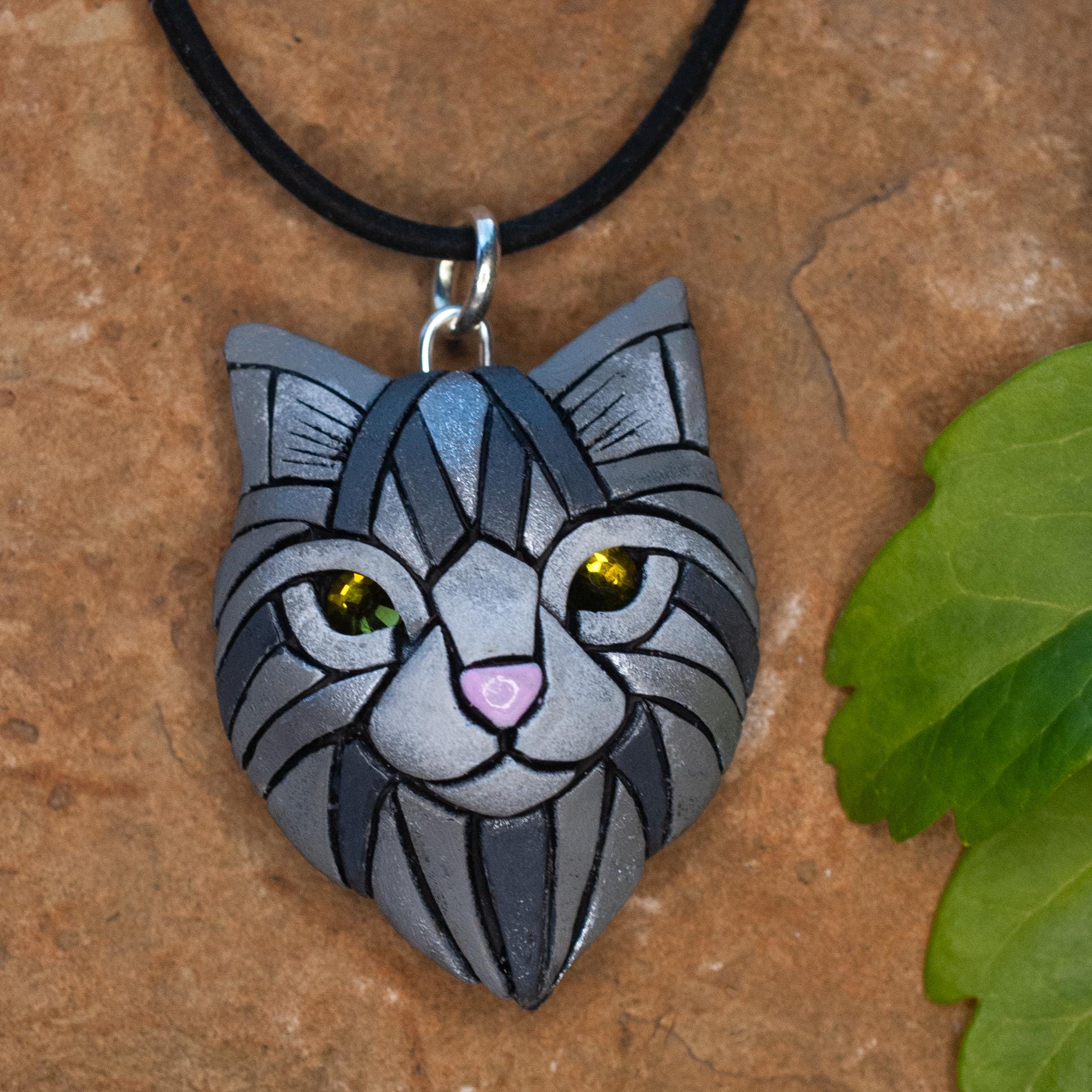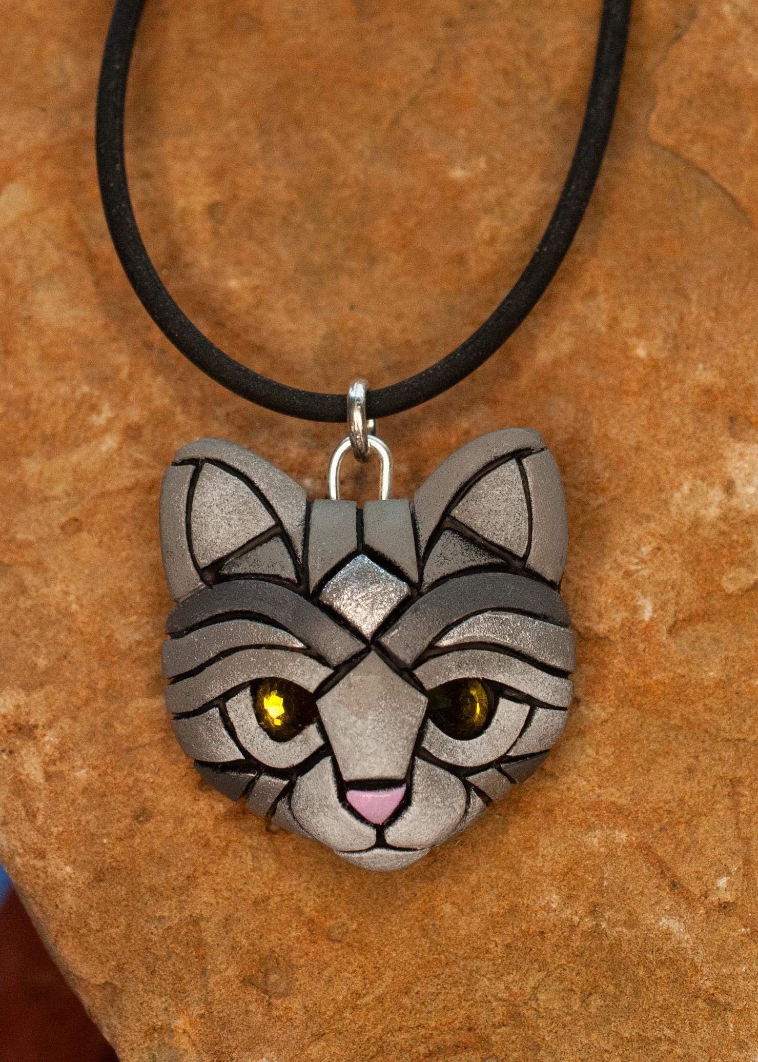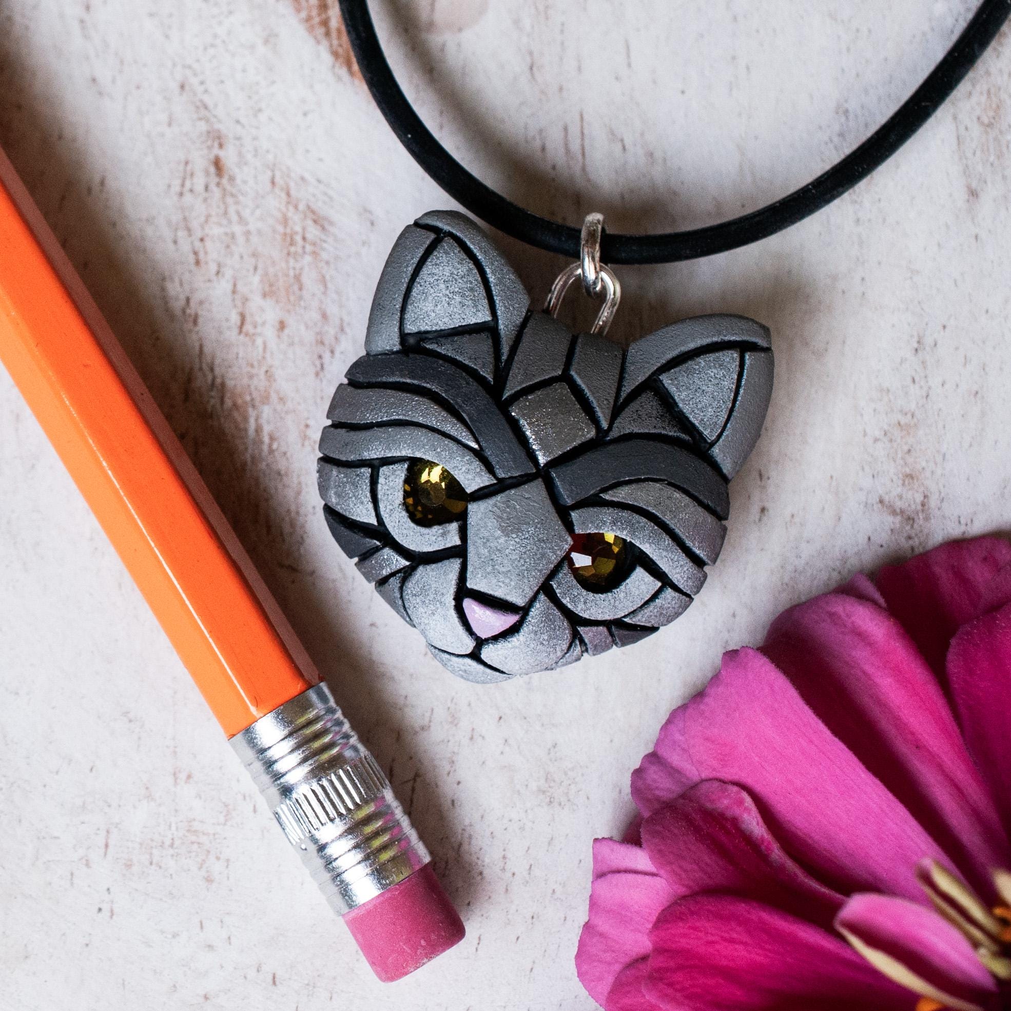 This handmade gray tabby cat necklace features a charming mosaic-style pendant with sparkling details. Crafted in my CreeksideMosaic studio, it’s a unique gift for gray cat lovers, pet parents, and anyone who treasures meaningful handmade jewelry. Lightweight, durable, and designed to be cherished for years to come.